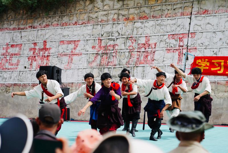 活動中,州歌舞團高原紅色文藝輕騎兵們?yōu)榇迕駧砹艘粓鑫幕⒀?,歌曲、舞蹈、樂器等藝術(shù)形式精彩紛呈。州歌舞團還結(jié)合黨中央決策部署和地方實際創(chuàng)作了小品類節(jié)目,把黨的二十大精神、民族團結(jié)、感恩教育、法治觀念等內(nèi)容融會其中,用地方方言、民族語言,把黨的聲音傳遞到千家萬戶,把黨的溫暖與關(guān)懷送到百姓心中。