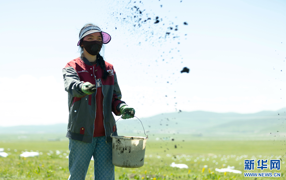 牧民們忙著給草原牧場(chǎng)增肥養(yǎng)護(hù)。新華網(wǎng) 王生元 攝