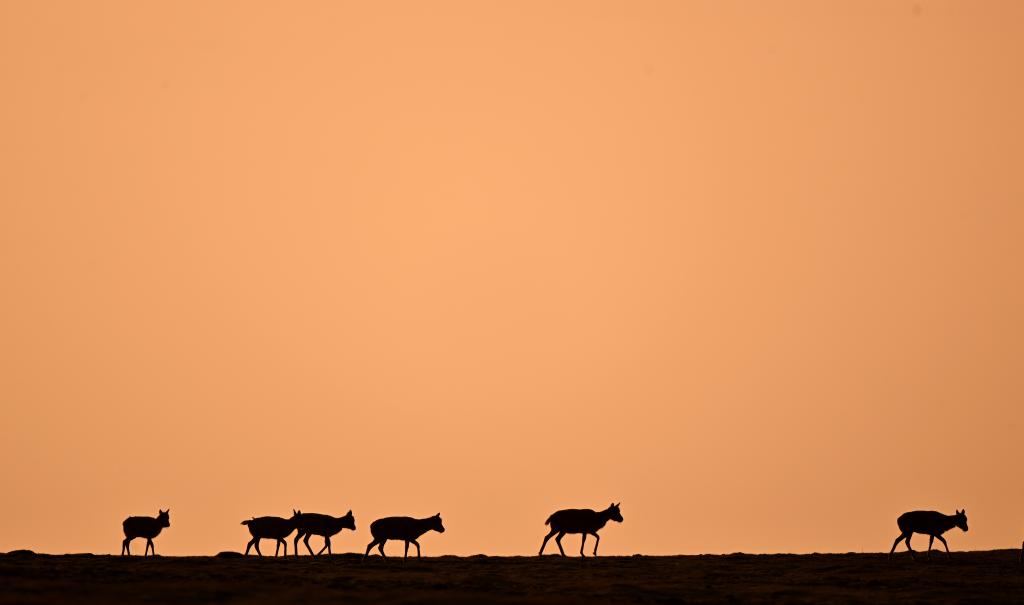 郭雪虎說(shuō),現(xiàn)在,每年有超過(guò)3萬(wàn)只雌性藏羚羊回到它們的出生地卓乃湖,誕下幼仔。如今的可可西里,在草地上、在山坡旁,不時(shí)會(huì)看到成群的藏羚羊,或低頭覓食,或飛馳而過(guò),耳畔不時(shí)能聽(tīng)到它們?nèi)岷偷慕新暋9┗⒄f(shuō),僅可可西里一地,藏羚羊數(shù)量已從20世紀(jì)80年代末的不足2萬(wàn)只,恢復(fù)到超過(guò)7萬(wàn)只。