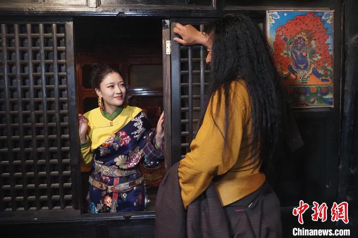 圖為蘭達百長碉樓內(nèi)部身穿藏族服飾的當?shù)鼐用瘛8呔?攝