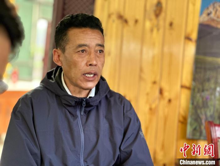 圖為三江源國家公園長江源園區(qū)曲麻萊管理處生態(tài)環(huán)境和自然資源管理局局長尕塔正在向記者介紹拉覺悟生態(tài)教育站建設(shè)情況。劉洋 攝