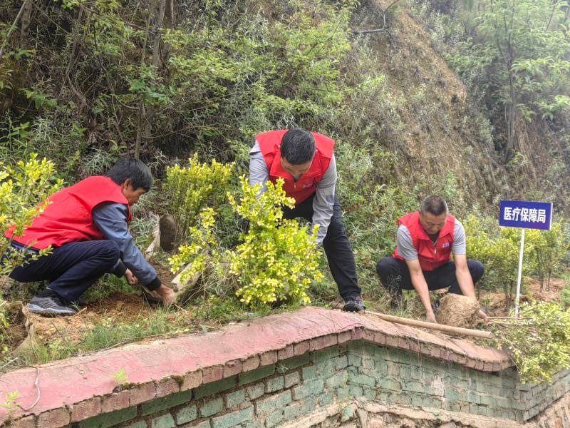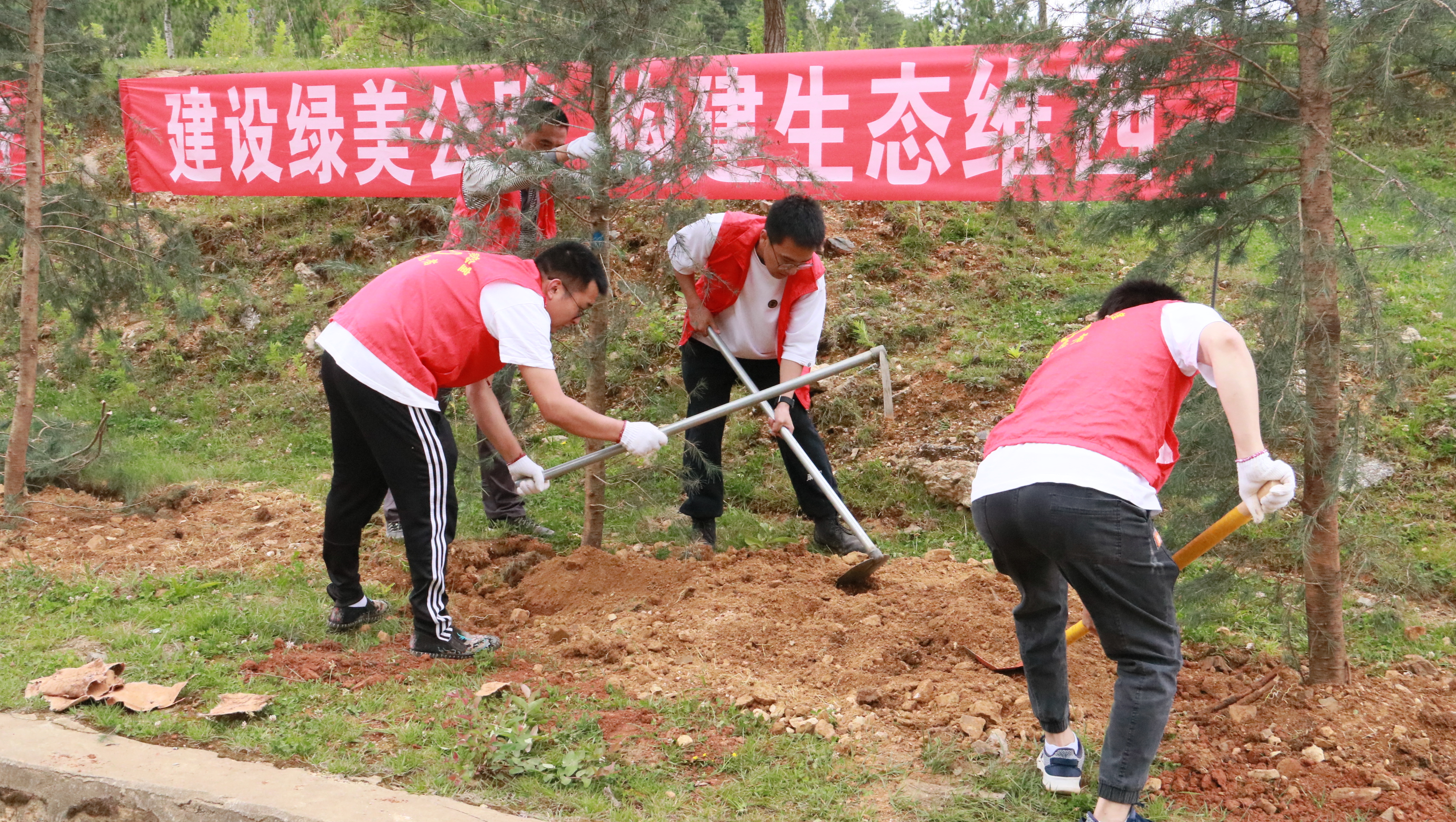 大家三五成群,有的用鋤頭鏟草,有的揮鍬挖坑,搬運樹苗、培土澆水……大家密切配合,各環(huán)節(jié)井然有序。