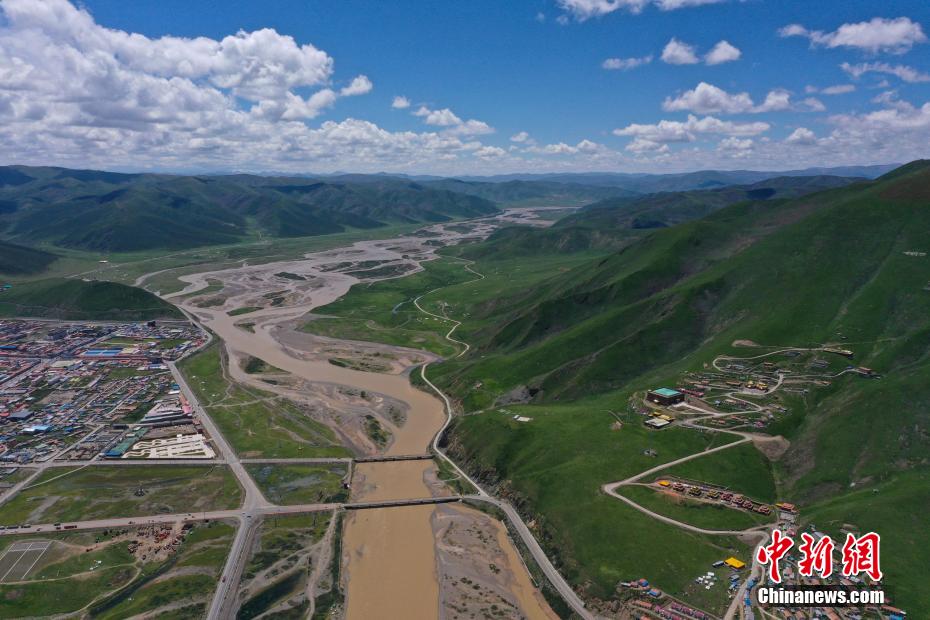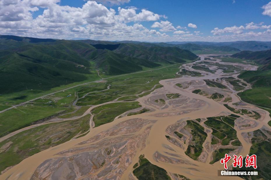 7月28日,航拍青海省果洛藏族自治州達日縣黃河辮狀水系。果洛州達日縣平均海拔在4200米以上,盛夏時節(jié),連綿的山巒披上“綠毯”,黃河流經其境內后,在開闊平緩的河道中數十條水流時而相匯時而分離,交織出巨型的辮狀水系,在群山和城鎮(zhèn)中蜿蜒流淌,形成獨特的高原壯美山河圖。