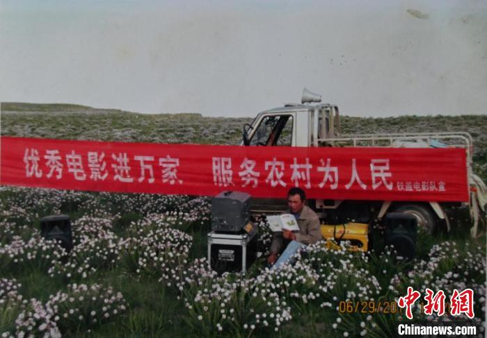 資料圖為許國強在海南州共和縣草原放映電影。受訪者供圖