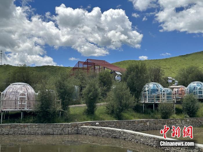 在園區(qū)內(nèi),除了大面積的草場,還能看見一些臨水而建、顏色各異的圓形房間。王春貴介紹稱,那是供游客休閑的星空房。目前,紅原牦?,F(xiàn)代農(nóng)業(yè)園區(qū)正朝著牧旅融合的道路發(fā)展,咖啡屋、星空房等休閑設(shè)施以及牧旅融合體驗區(qū)已初步建設(shè)完成?!叭拷ǔ梢院?,游客還能在園區(qū)內(nèi)體驗牦牛喂養(yǎng)?!蓖醮嘿F說。