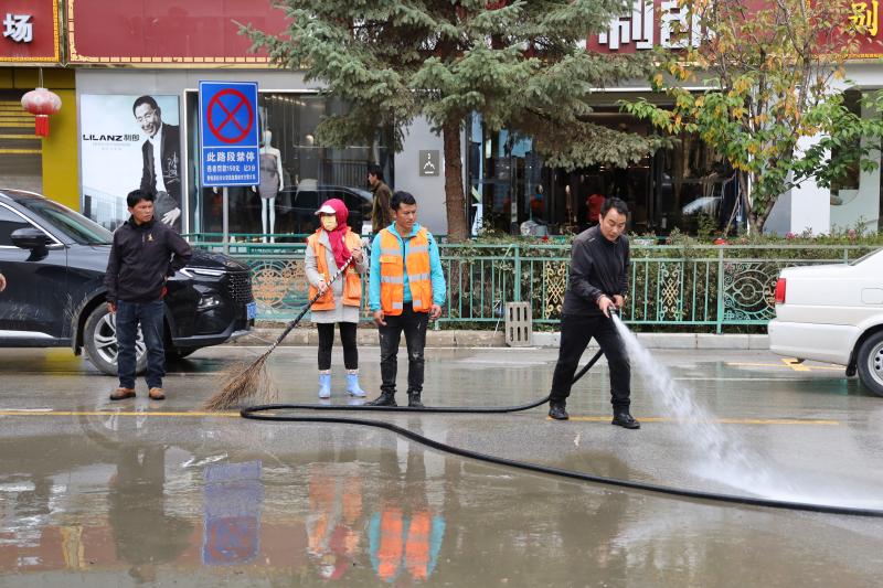 為盡快恢復(fù)城區(qū)潔凈容貌,香格里拉市和祥環(huán)??萍加邢挢?zé)任公司立即組織環(huán)衛(wèi)工人30名,抽調(diào)高壓水車2輛、掃地車4輛,積極開展道路清淤工作,同時對下水道水口周邊的樹枝、雜物等進行清理清運。經(jīng)過近五小時的連續(xù)作業(yè),成功恢復(fù)道路暢通整潔。
