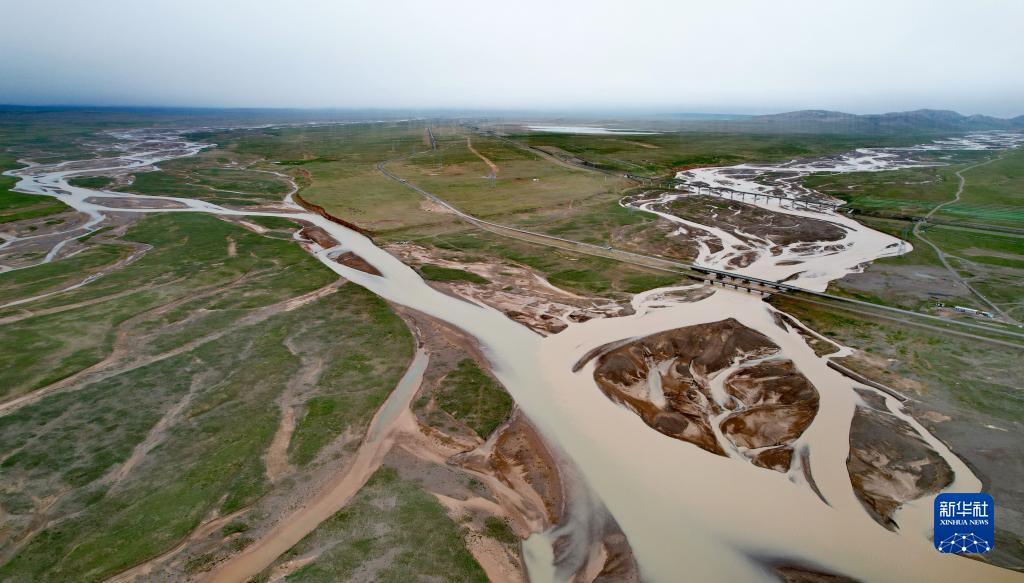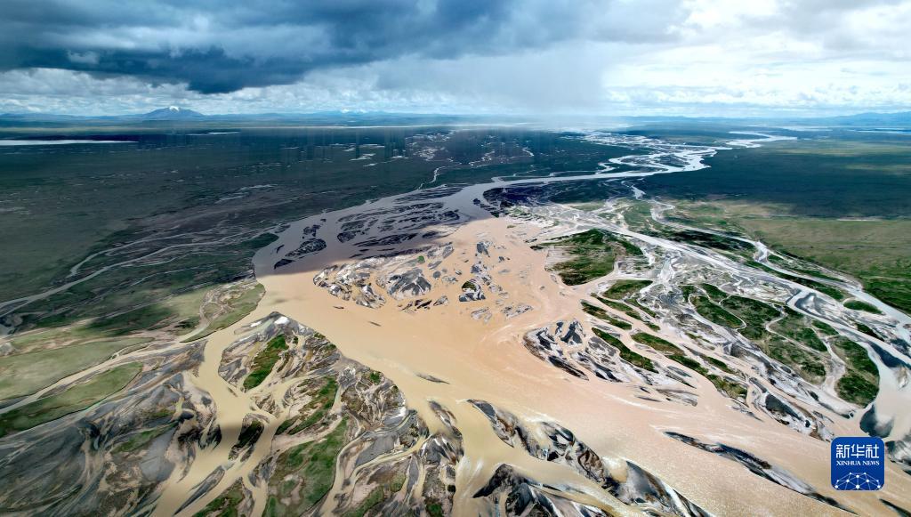 在沱沱河與當(dāng)曲匯合處的囊極巴隴拍攝的辮狀河道(7月27日攝,無人機(jī)照片)。新華社記者 劉詩平 攝