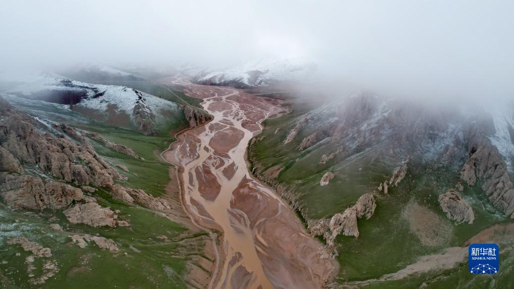 通天河支流的辮狀河道及周邊景色(7月26日攝,無人機(jī)照片)。新華社記者 劉詩平 攝