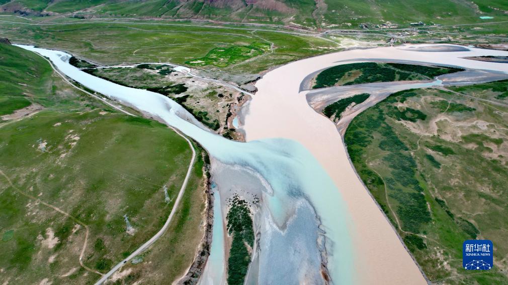 當(dāng)曲支流布曲與尕爾曲會合處(7月27日攝,無人機(jī)照片)。新華社記者 劉詩平 攝