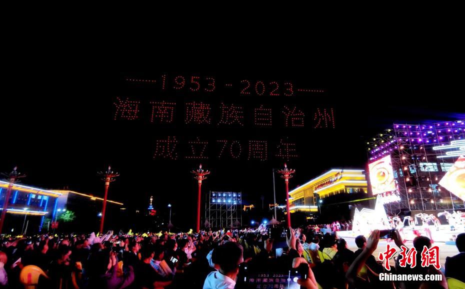 慶祝青海海南州成立70周年 無人機(jī)秀點(diǎn)亮高原夜空