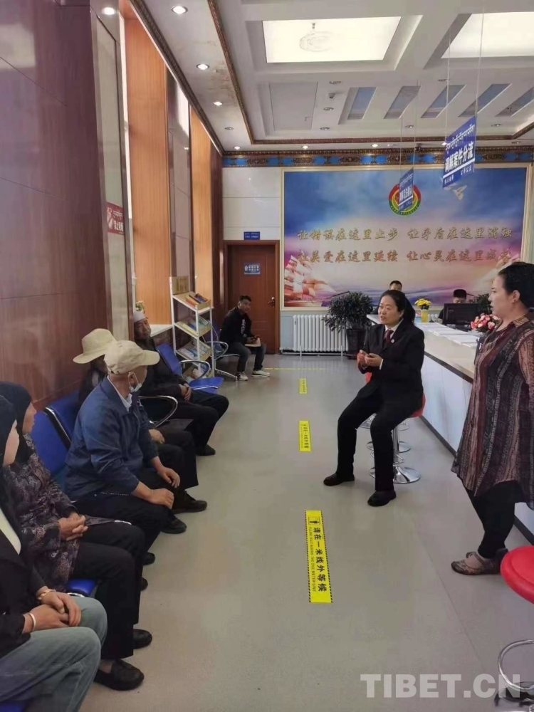 圖為青海省海南藏族自治州共和縣社會治理綜合服務(wù)中心工作人員為群眾進(jìn)行調(diào)解