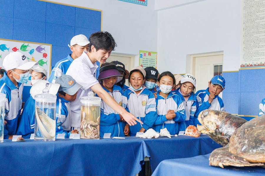 據(jù)介紹,支教隊(duì)在抵達(dá)囊謙第二完小后,充分發(fā)揮海洋特色,向孩子們分享了海洋生物博物館中的標(biāo)本制作方法,普及標(biāo)本的制作原理,并且從海洋的分布位置到海洋物種數(shù)量及分類,從體積最大的海洋生物藍(lán)鯨到游泳速度最快的劍魚,以及海洋污染的危害等方面為孩子們普及海洋環(huán)境保護(hù)知識。