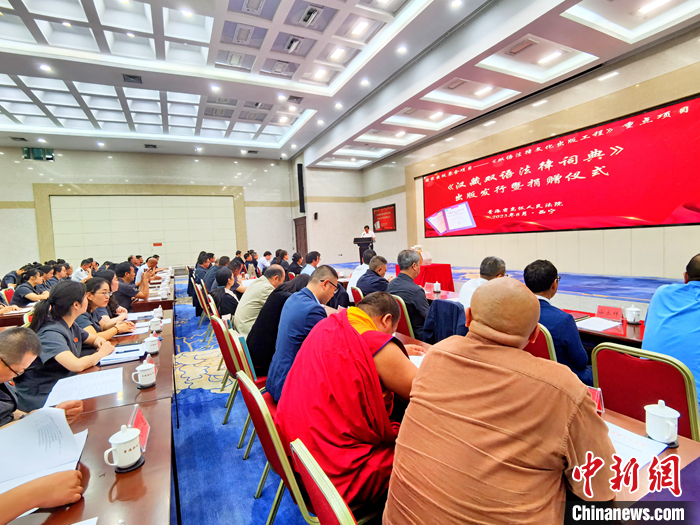 圖為《漢藏雙語(yǔ)法律詞典》出版發(fā)行暨捐贈(zèng)儀式現(xiàn)場(chǎng)。 中新社記者 祁增蓓 攝