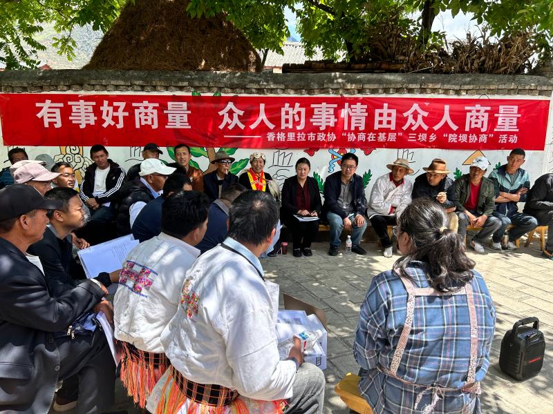 2023年4月26日,香格里拉市政協(xié)在三壩鄉(xiāng)開展“協(xié)商在基層”“院壩協(xié)商”活動(dòng)。