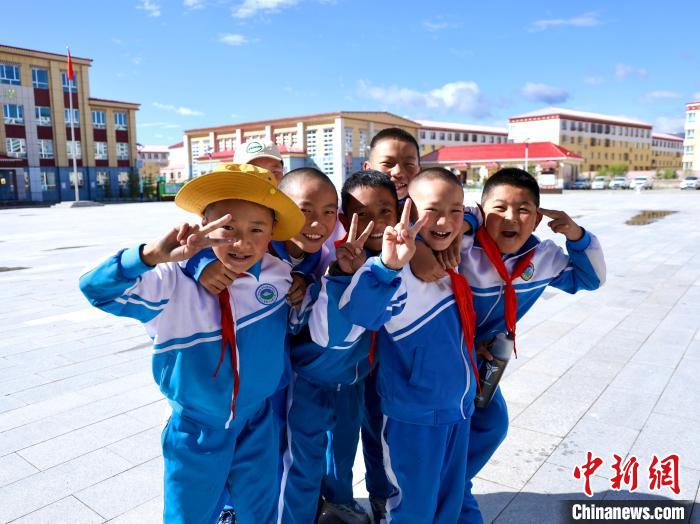 圖為青海省果洛州瑪沁縣第三民族小學學生。徐尚才 攝