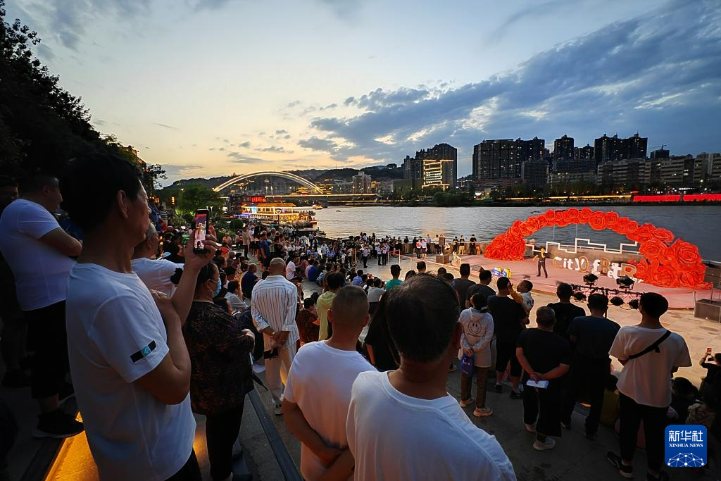 7月19日,在蘭州市城關(guān)區(qū),游客在黃河岸邊欣賞黃河之濱百日千場音樂展演活動。新華社記者 范培珅 攝