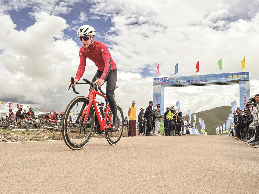 2023年8月11日,作為“福地色達(dá)·金馬之邀”草原游牧文化遺產(chǎn)體驗(yàn)季系列活動之一的金馬草原自行車天路挑戰(zhàn)賽在格薩爾文化藝術(shù)中心鳴槍開賽。100多名來自全國各地的自行車專業(yè)運(yùn)動員及自行車愛好者齊聚福地色達(dá),共赴一場別開生面的體育盛宴?!∫晃粎①愡x手激動地說:“我是從湖北武漢過來的,第一次參加海拔這么高的比賽,感覺很好、很棒。一路風(fēng)景超美,美呆了!如果還有這樣的比賽,我一定會再來的!”