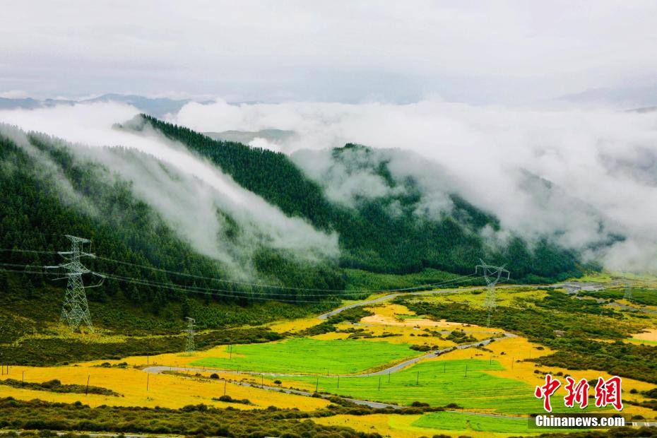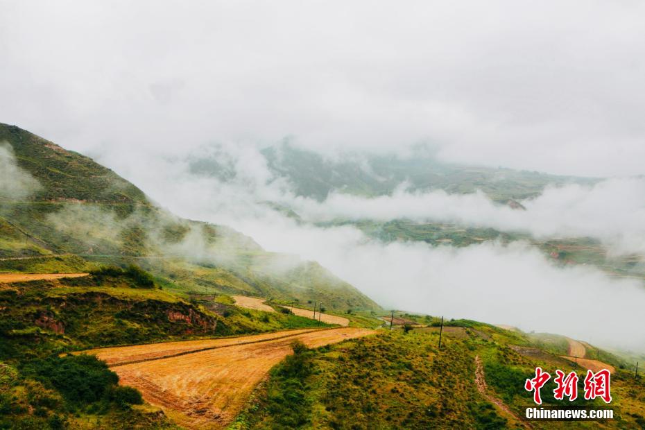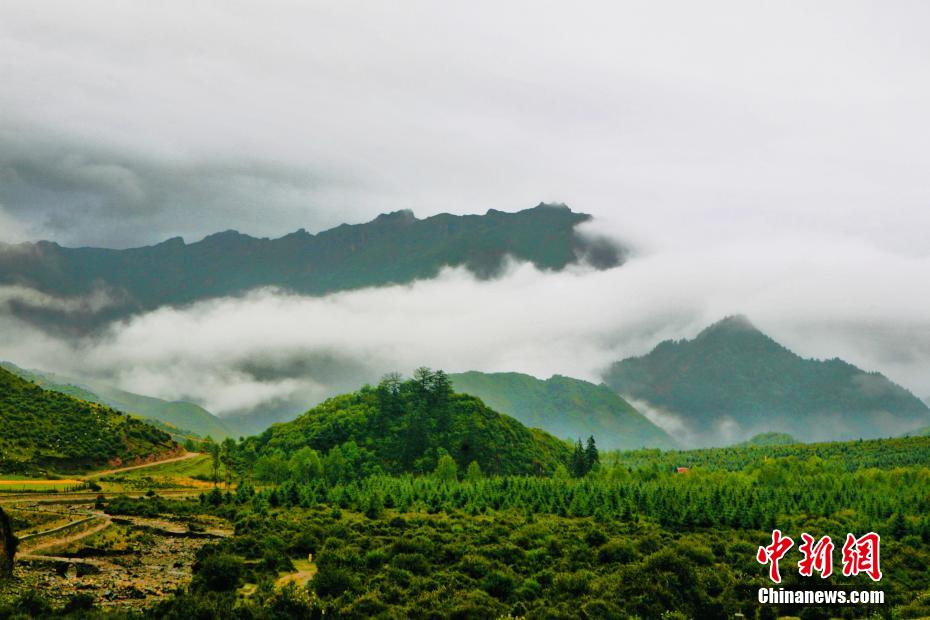 金秋9月,一場秋雨過后,青海省海南藏族自治州貴德縣山間云霧繚繞,白色云海像潔白的哈達飄落山間,與藍天、綠地相映成趣,風(fēng)光旖旎。