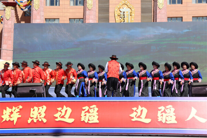 來自迪慶州文化館、俏夕陽藝術團、雍恰碩藝術團等的演員們帶來了《阿尺目刮》《犁牛調》《洛吉葫蘆笙打跳》等歌舞表演和走秀,為現場群眾帶來了一場文化盛宴,充分展現了迪慶州各族兒女共同團結進步、共同繁榮發(fā)展的時代風貌。