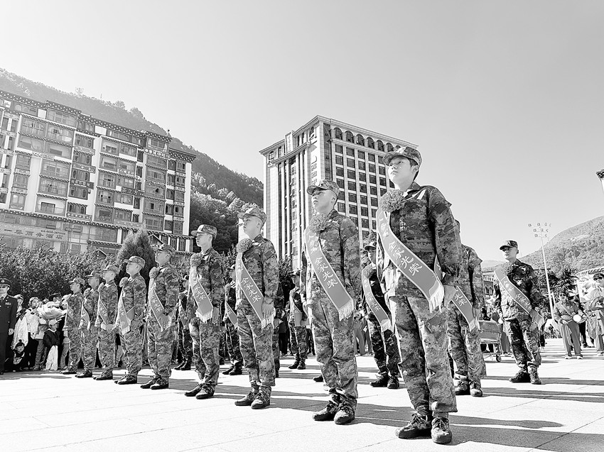 9月15日上午10時(shí),康定市情歌廣場,25名新兵身著迷彩服,胸前佩戴大紅花,肩上披著“一人參軍,全家光榮”綬帶,身姿挺拔、精神抖擻,隊(duì)列整齊,意氣風(fēng)發(fā)。[詳細(xì)]