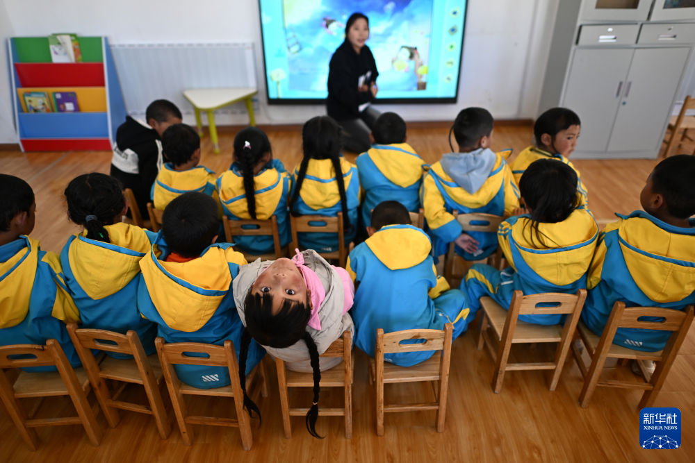 在曲麻萊縣葉格鄉(xiāng)幼兒園,小朋友們在課堂上(9月13日攝)。新華社 張宏祥 攝