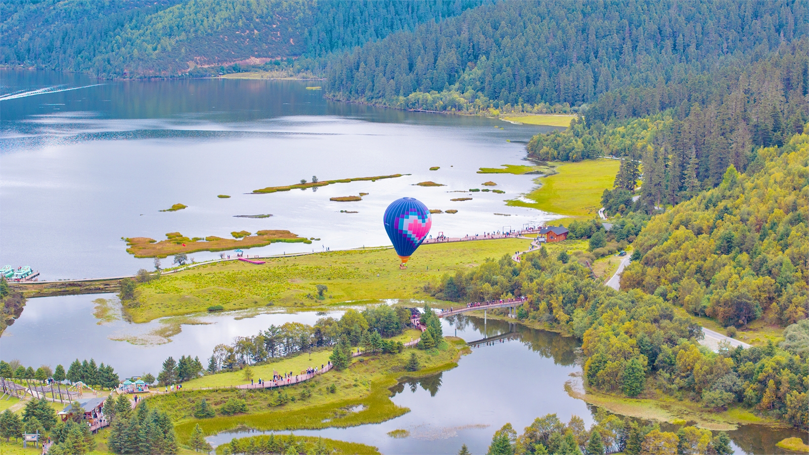 國慶假期期間,香格里拉普達措國家公園新增直升機和熱氣球低空觀光體驗項目,讓游客從高空俯瞰神秘而壯麗的普達措公園美景。