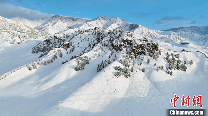 10月以來,位于柴達(dá)木盆地的青海省海西蒙古族藏族自治州都蘭縣迎來入秋后降雪,雪后的都蘭縣銀裝素裹,山上的樹木掛滿了晶瑩的雪花,草地上覆蓋了一層厚厚的積雪,俯瞰群山,在皚皚白雪的映襯下,峰谷相連、如夢如幻,美不勝收,如同一幅水墨畫鋪展在天地間。