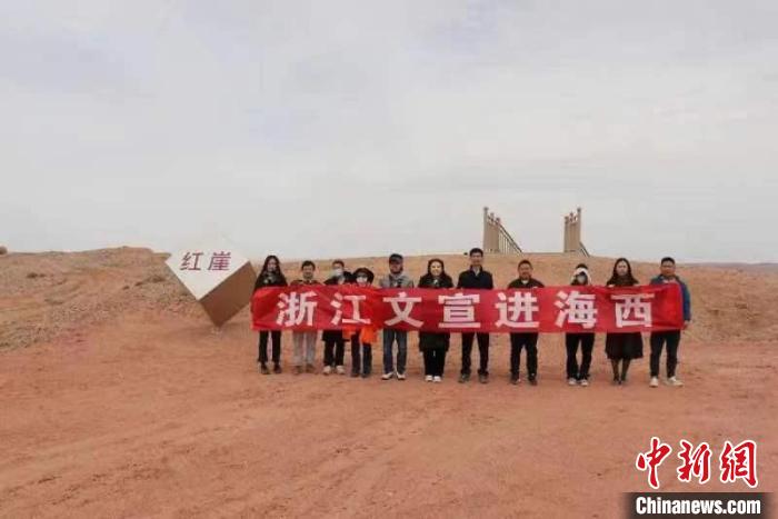 圖為2023年5月27日,浙江省文宣團(tuán)隊(duì)赴海西州大柴旦紅崖火星地貌區(qū)采風(fēng)。(資料圖) 浙江援青指揮部 供圖
