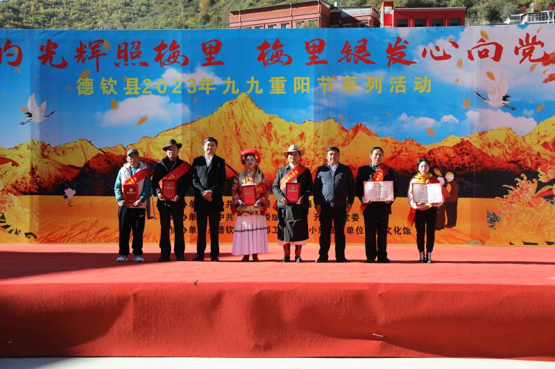 活動(dòng)中,德欽縣縣委、政府負(fù)責(zé)人分別為2023年德欽縣“黨的光輝照梅里 梅里銀發(fā)心向黨”重陽節(jié)系列慶?;顒?dòng)致辭,并通報(bào)了德欽縣2023年經(jīng)濟(jì)社會(huì)發(fā)展情況。