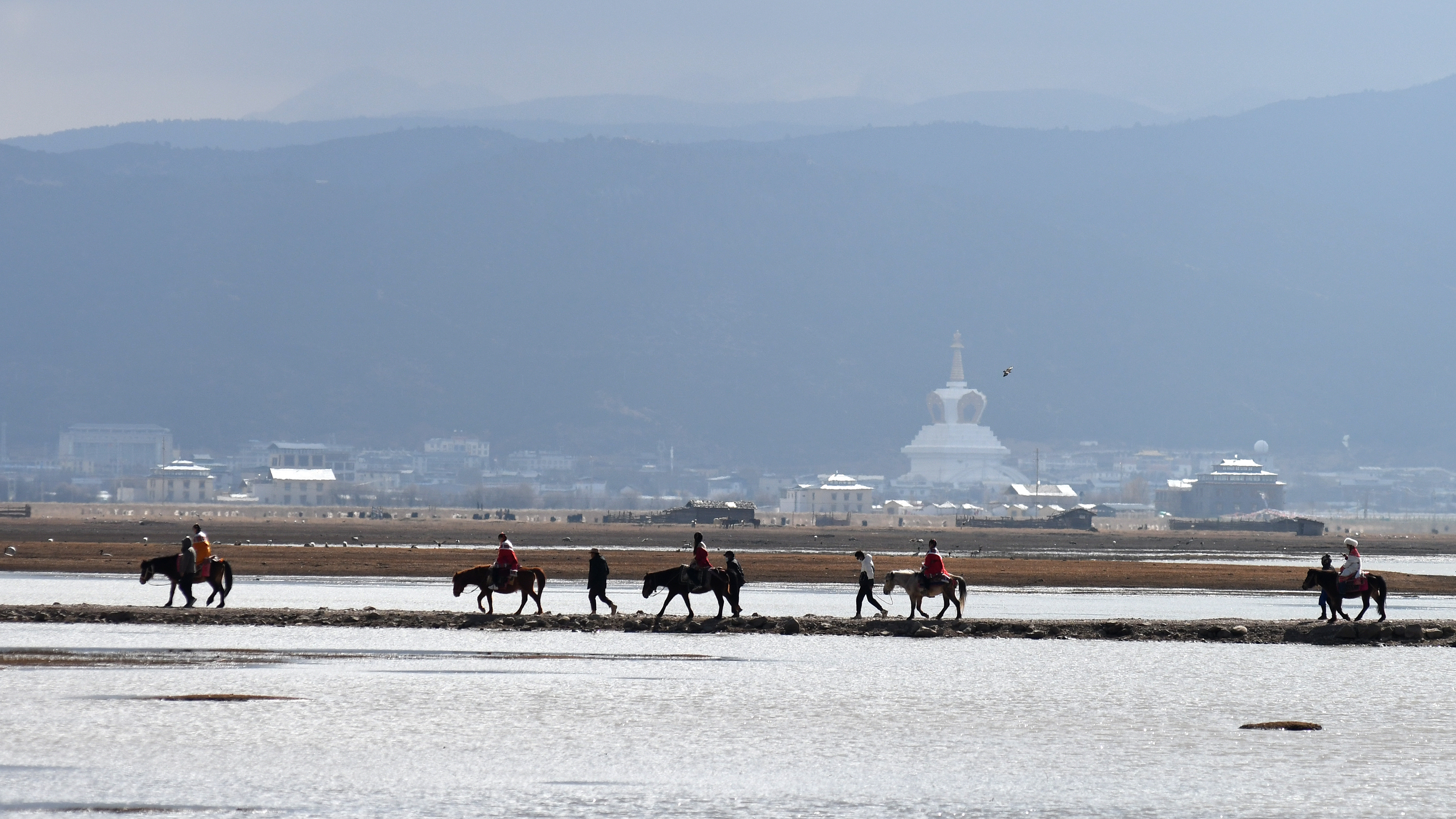 冬季的普達(dá)措景區(qū),林濤載水聲,藍(lán)天伴幽湖,寧?kù)o無(wú)喧囂;冬季的納帕海,皚皚白雪成為了黑頸鶴、黑鸛、白尾海雕、斑頭雁等珍稀的鳥類自由作畫的繪本;冬季的噶丹·松贊林寺,當(dāng)?shù)谝豢|陽(yáng)光灑向寺廟的金頂,若隱若現(xiàn)的云霧和裊裊桑煙下藏著人間仙境;冬季的獨(dú)克宗古城,綿綿白雪裝飾著藏式民居,穿著民族服裝的人們踏著青石板路緩緩走過,美好而生動(dòng)。