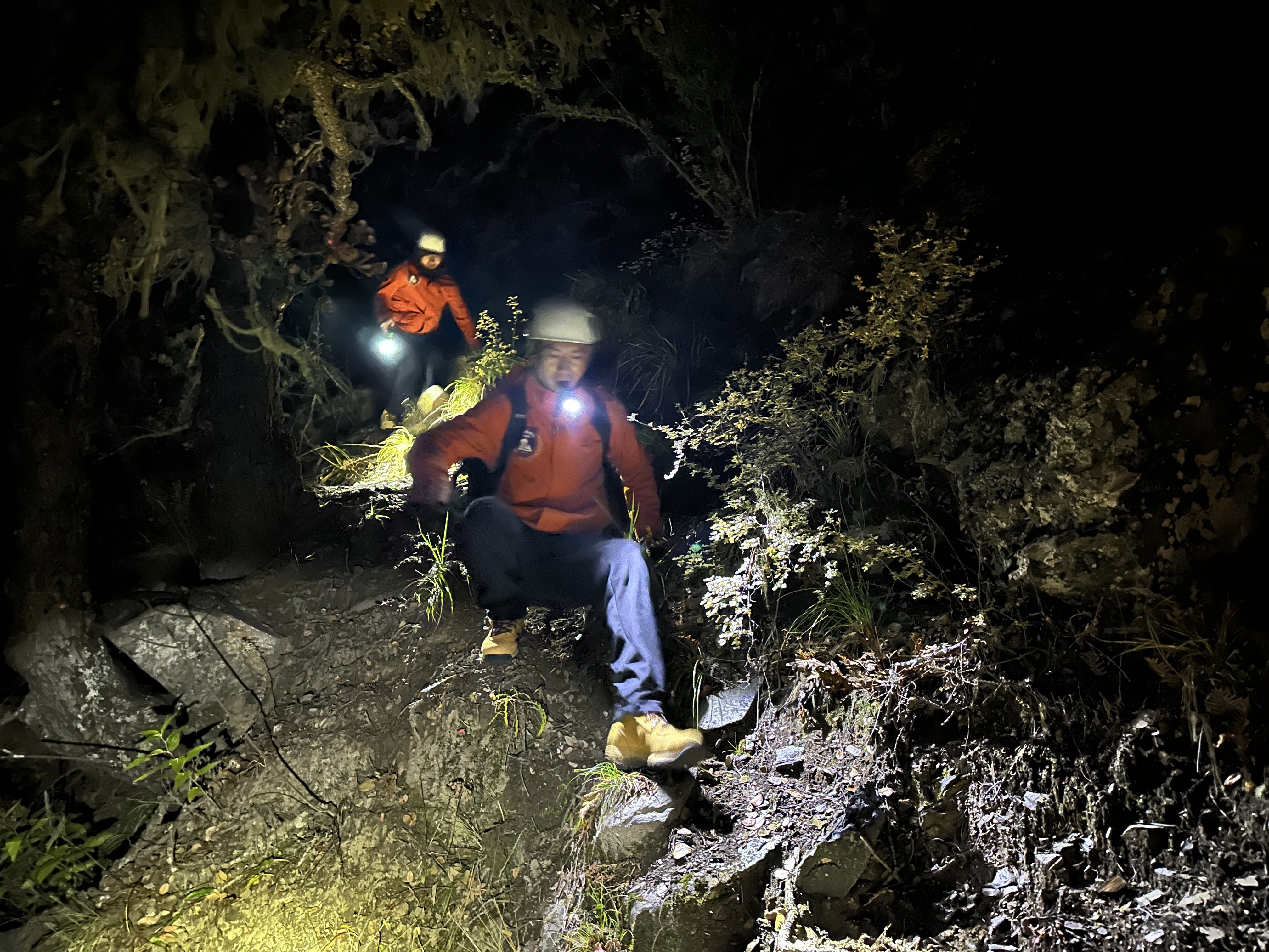 救援人員一邊與報(bào)警人保持聯(lián)系,一邊聯(lián)系當(dāng)?shù)剜l(xiāng)鎮(zhèn)干部及村民,了解地形地勢和搜救線路。21時(shí)23分,救援人員沿著崎嶇山路到達(dá)海拔近4000米被困現(xiàn)場。