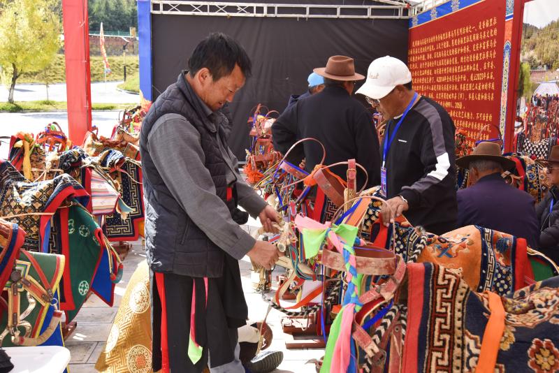 10月30日,由州委、州政府主辦的世界的“香格里拉”金秋賽馬節(jié)民間鞍馬具展示交流活動(dòng)在香格里拉市民族體育中心綜合體育場(chǎng)舉辦。圖為鞍馬具愛好者在現(xiàn)場(chǎng)參觀。