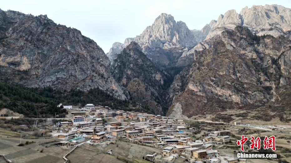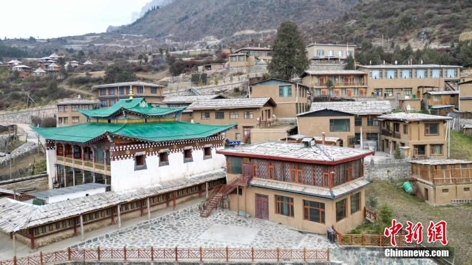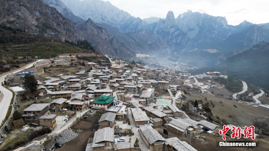 11月3日,航拍甘肅省甘南藏族自治州迭部縣扎尕那景區(qū)藏族村落的建筑。(無人機照片)中新社記者 九美旦增 攝