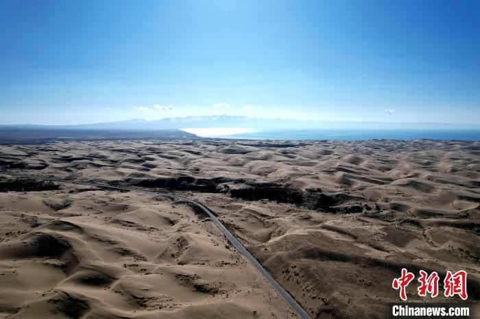 11月11日,記者驅車來到青海省海北藏族自治州海晏縣金沙灣,連綿沙丘與蔚藍湖水相接景色優(yōu)美。金沙灣北距海北藏族自治州首府西海鎮(zhèn)約25公里、西距青海湖約2公里,以觀看金色的沙漠風光為主要特色。