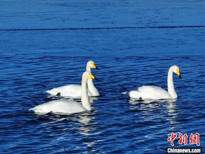 青海湖大天鵝遷徙而來(lái) 沐浴游弋宛若仙子