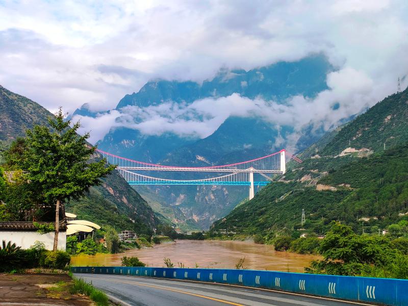 麗香鐵路、香麗高速、國(guó)道214虎跳峽段“三路“同框 (李競(jìng)?cè)?攝)