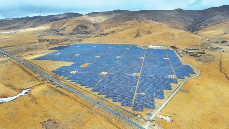 12月22日,四川省阿壩藏族羌族自治州阿壩縣蘭措瑪光伏電站,一片片光伏板在陽光照射下源源不斷地送出清潔電力。蘭措瑪光伏電站是阿壩縣首個大型光伏電站,除了發(fā)揮發(fā)電作用外,光伏板的下方還種植了牧草,實(shí)現(xiàn)經(jīng)濟(jì)效益、社會效益和生態(tài)效益的多重豐收。