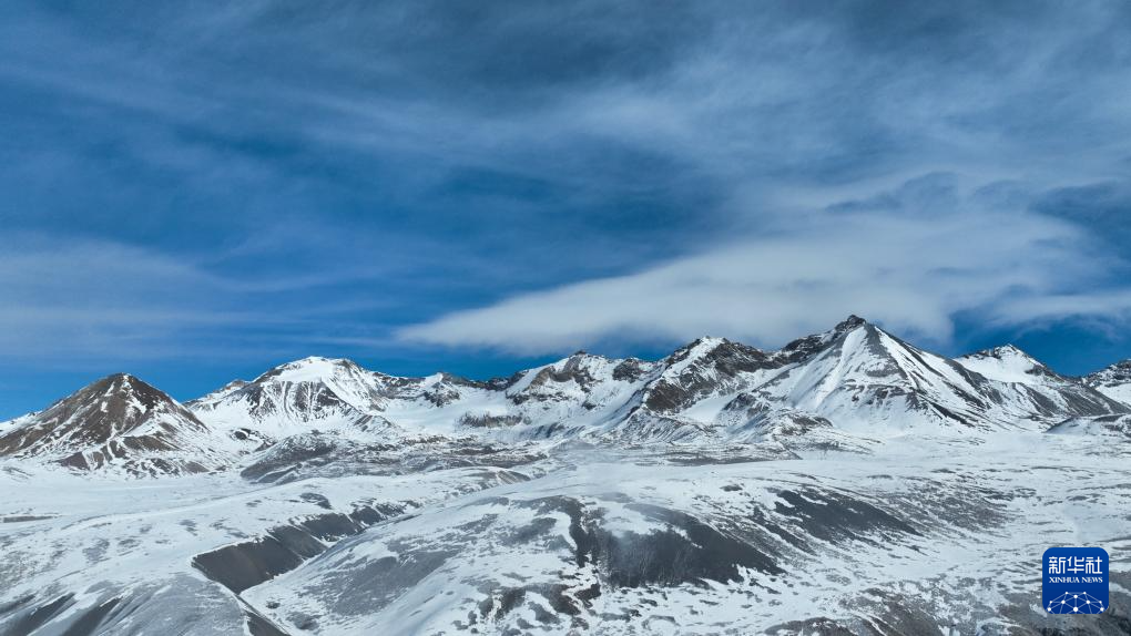 這是1月23日在青海省海北藏族自治州門源回族自治縣境內(nèi)拍攝的崗什卡雪峰(無人機照片)。新華社記者 張龍 攝