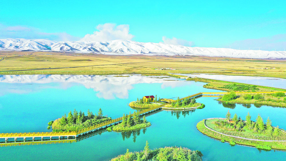 自海北藏族自治州海晏縣境內(nèi)的包呼圖山蜿蜒前行,一滴滴匯聚的雪山融水時(shí)而湍急時(shí)而平緩,在流經(jīng)草原、山川后沖刷出適宜人類(lèi)居住的谷地,山水相映、水城相依,寫(xiě)就人水和諧共生新篇章。