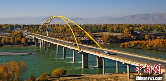 資料圖為航拍海南州貴德縣境內黃河大橋。海南州委宣傳部供圖