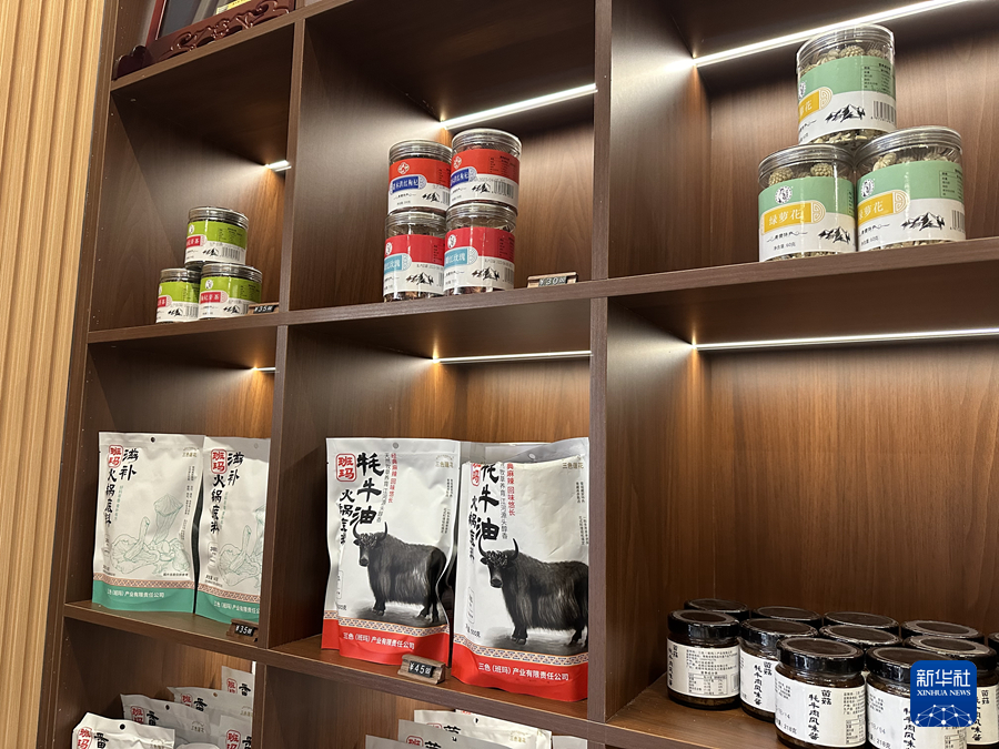 班瑪縣特色農(nóng)副產(chǎn)品銷售直營(yíng)店的產(chǎn)品。新華社記者 白瑪央措 攝