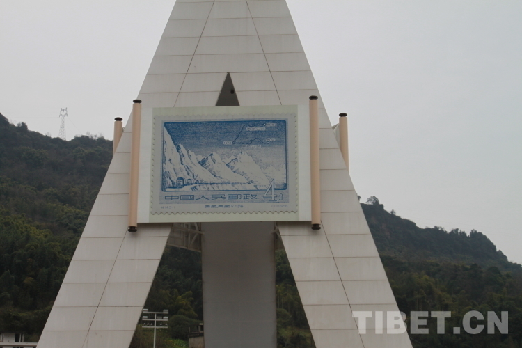 1956年3月30日,中華人民共和國第一套公路建設(shè)特種郵票—《康藏、青藏公路》發(fā)行,這套郵票的編號是“特14”,特14第一枚“3-1”郵票票面為淡藍(lán)色,主體畫面是一座挺拔冷峻的雪山。山腳下,一列車隊(duì)正沿著一條狹長的公路逶迤前行。公路一面緊貼懸崖,一側(cè)緊臨深淵。在這枚郵票畫面的右上方,有一幅簡單的康藏、青藏公路路線圖,上面標(biāo)注康藏公路的起點(diǎn)為“雅安”,這是雅安第一次出現(xiàn)在郵票這種“國家名片”上。
