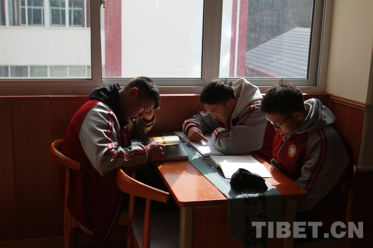 圖為陽(yáng)光下看書的學(xué)生們 攝影:登真巴珍