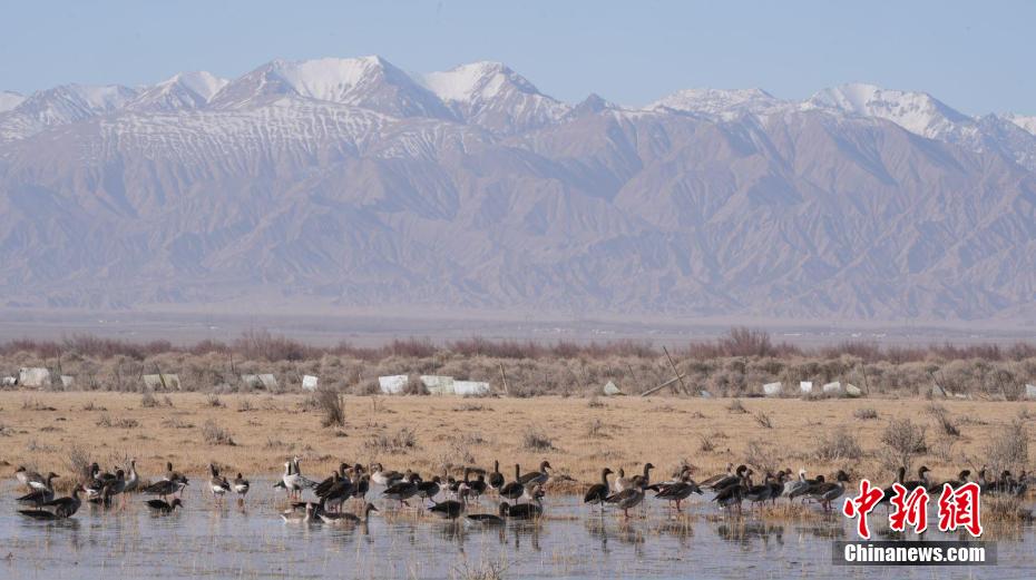 近日,隨著天氣轉(zhuǎn)暖,在青海省柴達(dá)木盆地,大批國(guó)家二級(jí)重點(diǎn)保護(hù)野生動(dòng)物灰鶴聚集于都蘭縣巴隆鄉(xiāng)。此外,野生天鵝、斑頭雁、黃鴨、赤麻鴨等鳥類也聚集于此,或展翅高飛,或覓食嬉戲,在候鳥遷徙季勾勒出一幅山水靜好、飛鳥翔集的美麗生態(tài)畫卷。