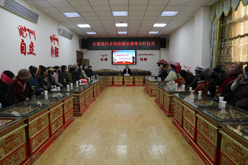 3月22日,對(duì)于地處“云端扎溪卡”石渠縣尼呷鎮(zhèn)的不少婦女來(lái)說(shuō)是個(gè)重要而暖心的日子。當(dāng)天上午,全縣婦女創(chuàng)業(yè)就業(yè)基地分紅儀式在縣婦聯(lián)“婦女之家”舉行,來(lái)此參加儀式的婦女身穿節(jié)日盛裝,臉上洋溢著幸福的笑容。