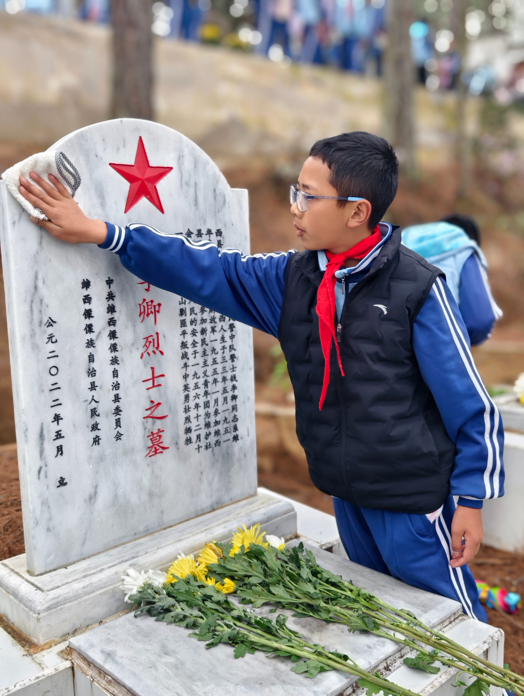 4月3日,維西縣保和鎮(zhèn)第一完全小學(xué)組織260名師生來到烈士陵園開展清明祭掃活動。隨著雄壯的國歌響起,全體師生面對革命烈士紀(jì)念碑肅穆站立,深切表達(dá)對先烈們的崇高敬意。祭掃現(xiàn)場,學(xué)生們瞻仰革命烈士紀(jì)念碑,默哀鞠躬、敬獻(xiàn)鮮花、擦拭墓碑,向革命英烈們表達(dá)深深的哀思和無盡的崇敬之情。