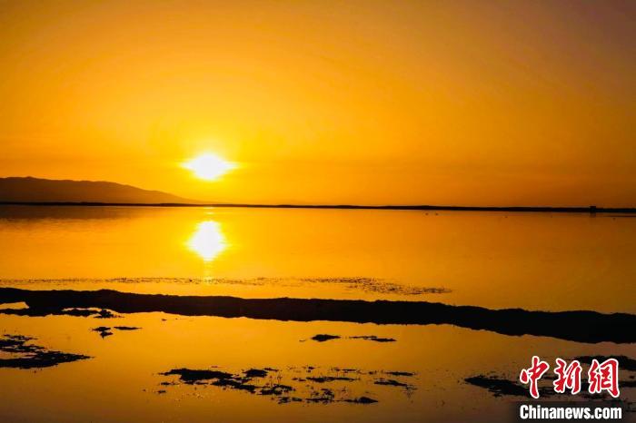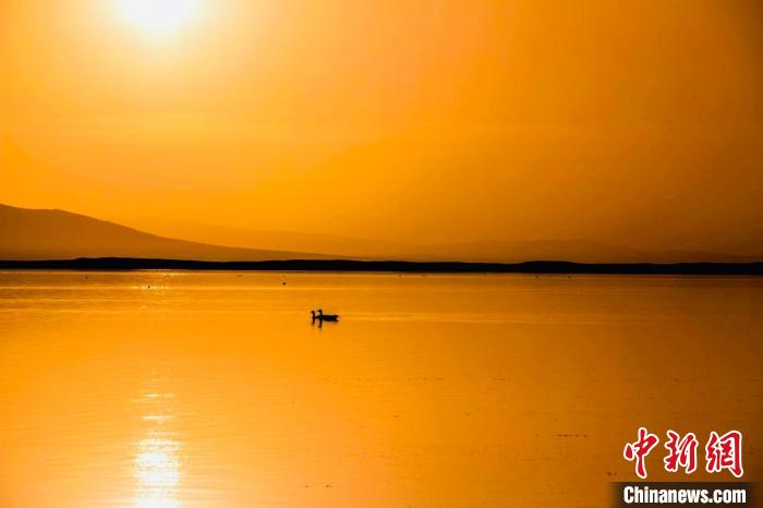 圖為青海湖夕陽如夢(mèng)如幻。趙海梅 攝