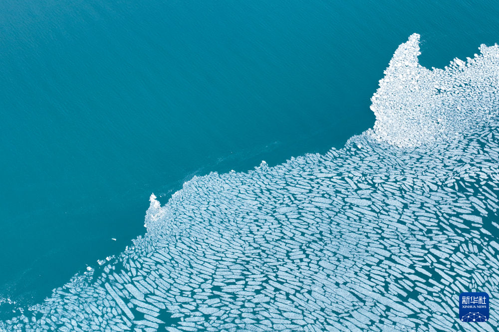 這是4月11日在青海湖拍攝的未融化的湖冰(無(wú)人機(jī)照片)。新華社記者 張龍 攝