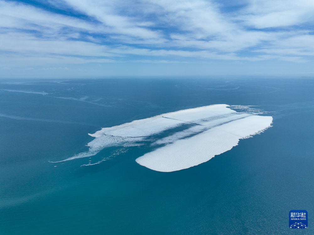 這是4月11日在青海湖拍攝的部分未融化的湖冰(無(wú)人機(jī)照片)。新華社記者 張龍 攝