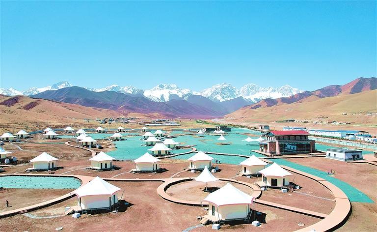 藍(lán)天白云、雪山皚皚,俯瞰天??h抓喜秀龍旅游基礎(chǔ)設(shè)施建設(shè)項(xiàng)目現(xiàn)場(chǎng),蜿蜒曲折的木棧道如花莖延伸,一座座白頂帳篷外形的民宿似雪蓮綻放,幾十名工人爭(zhēng)分奪秒搶抓工期,為項(xiàng)目完工做最后沖刺。